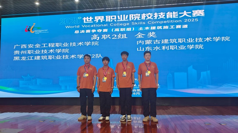 8月31日,2025世界职业院校技能大赛总决赛“土木建筑施工赛道”争夺赛圆满收官。黑龙江建筑职业技术学院机电工程系23级王天龙、刘嘉兴与24级何禹含、张祥宇组成的参赛团队,在李明君、盛炎春老师的悉心指导下,凭借精湛技艺和稳定发挥,从全国100余支队伍中脱颖而出,斩获该赛道金奖第一名并成功晋级排位赛。这是学院第三次在土木建筑施工领域摘得世职赛金奖,也是第二次晋级排位赛。